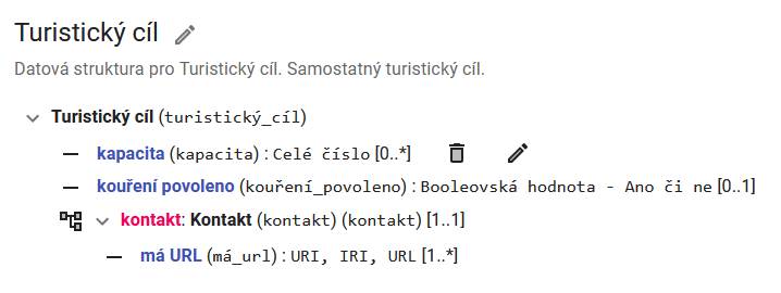 - the root has unique data type in the whole data structure and the instance typing configuration is set to “ALWAYS” - in the example that would be “Turistický cíl” - OR